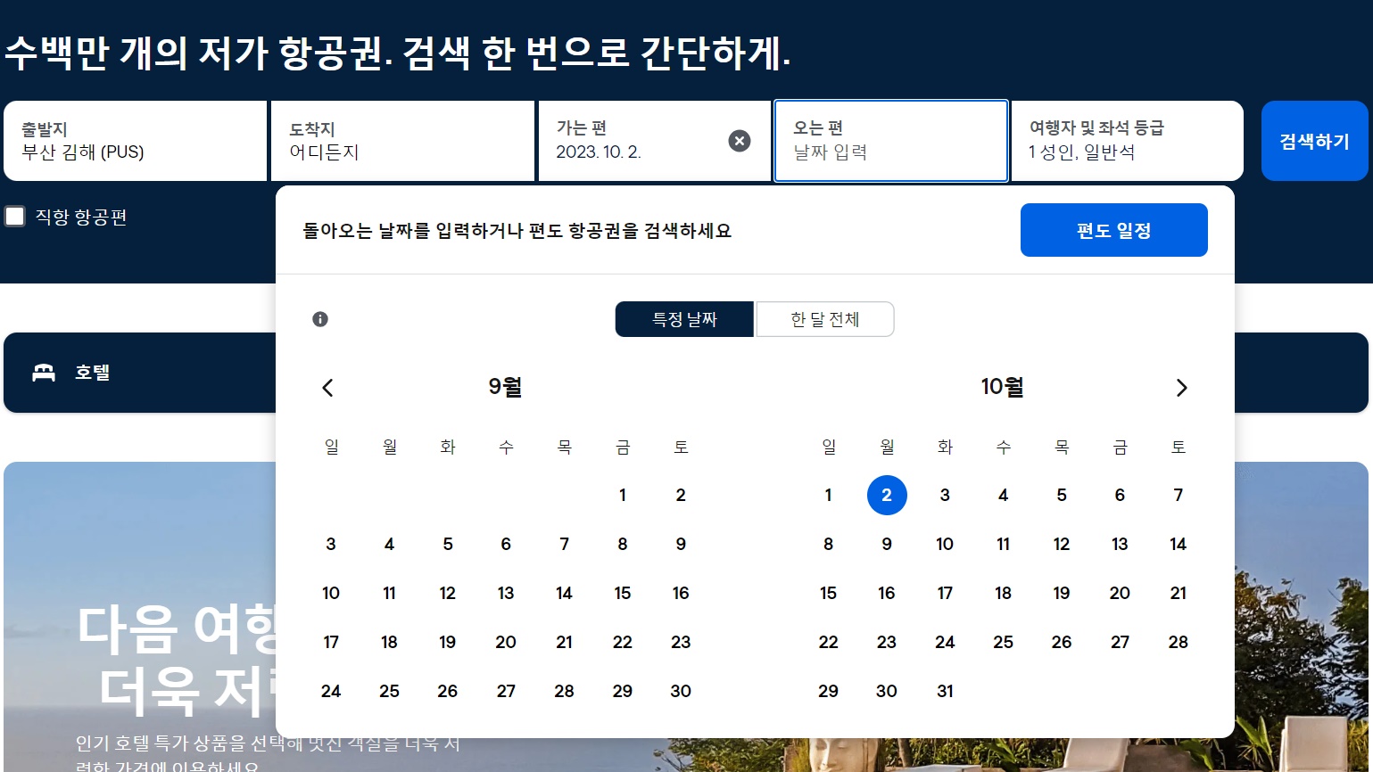 - 도착날짜 오는날짜 목적여행지 검색하기