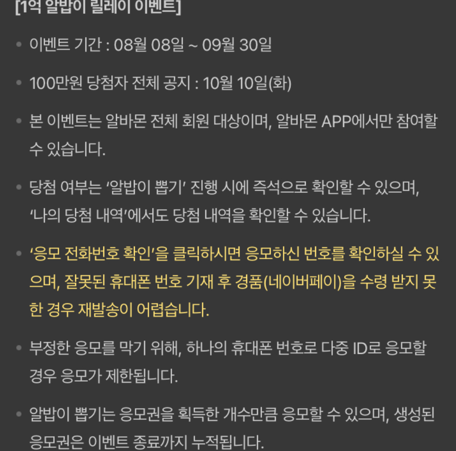알바몬 이벤트 1억 릴레일 참여방법