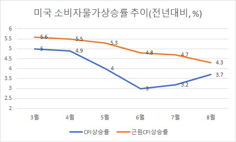 8월 소비자 물가지수(CPI)3.7%상승
