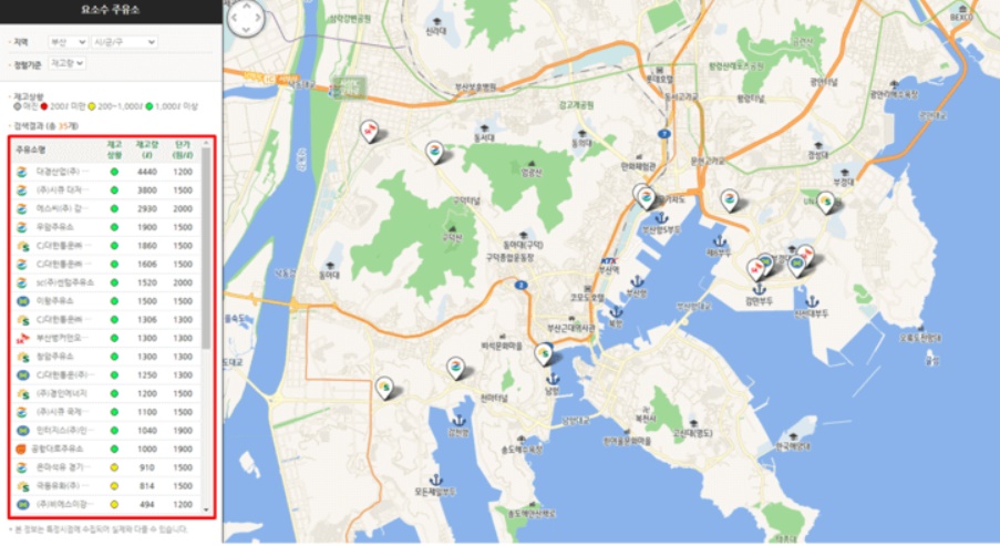 위의 사진과 같이 요소수 판매점인 거점 주유소 조회 할수 있는 화면이 나오며 여기서 자신이 거주지역을 선택하신후 검색해서 요소수 거점 주유소 확인할수 있습니다. 유소별 요소수 가격과 재고량을 한눈에 확인하실수 있습니다.