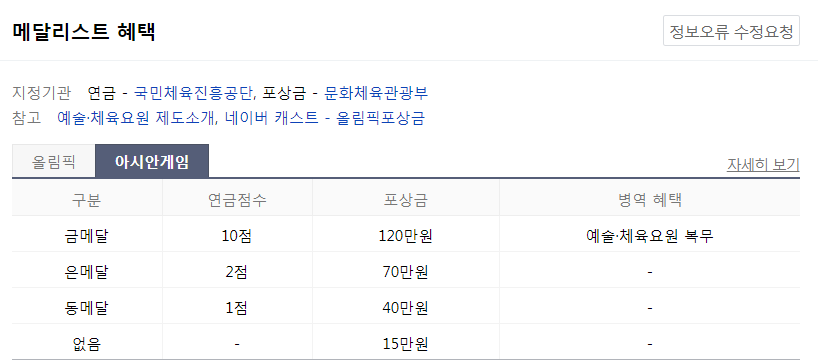 올림픽가 달리 아시안게포임은 반드시 금메달을 획득해야 병역 면제 혜택을 받을수 있습니다.