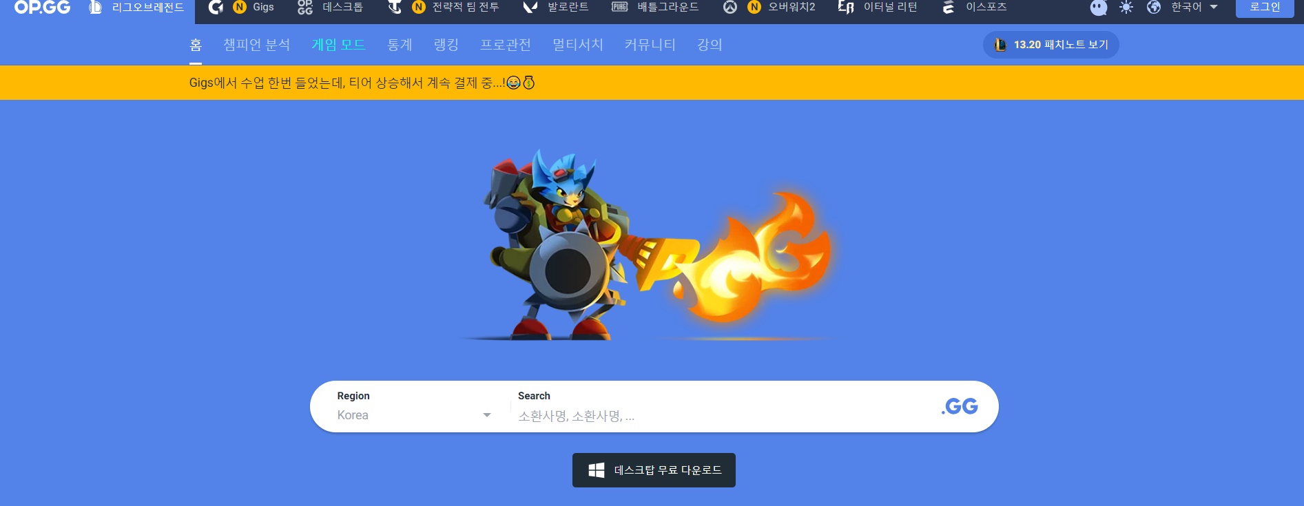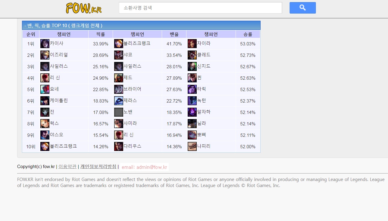 가장오래된 사이트며 과거부터 최근 패치 내용까지 한눈에 확인이 가능합니다. 특히 로테이션 챔피언 세일정보 까지 확이이 가능해서 많은 유저들도 이용하고 있스빈다.