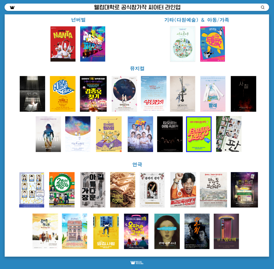 웰컴대학로에 진행중인 뮤지컬 연극 종류