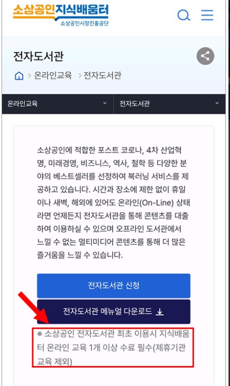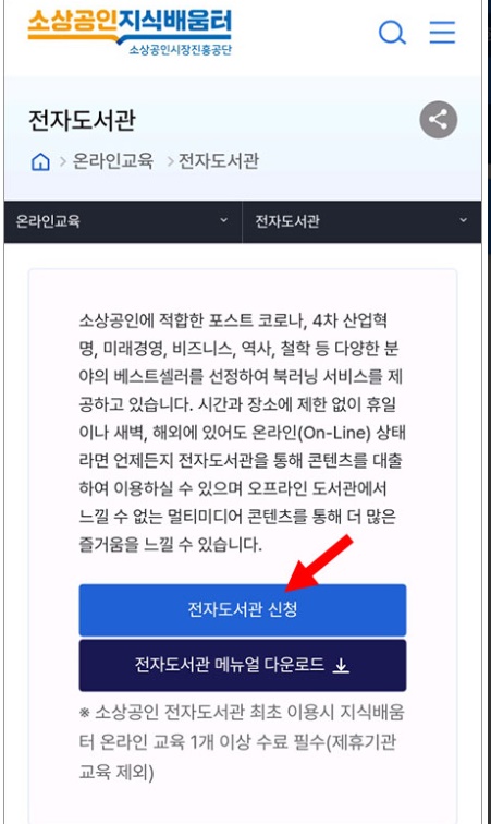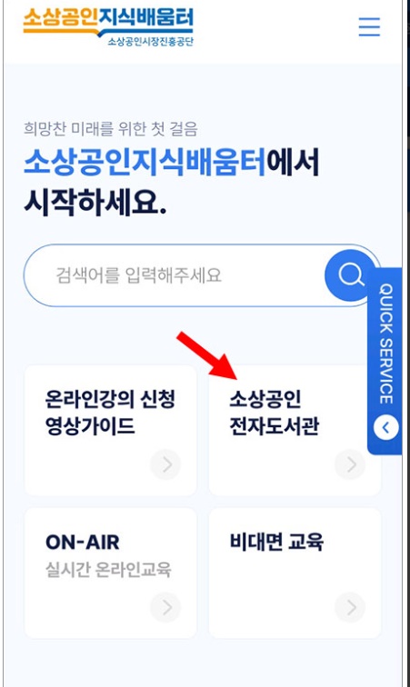- 홈페이지 하단 소상공인 전자도서관 클릭