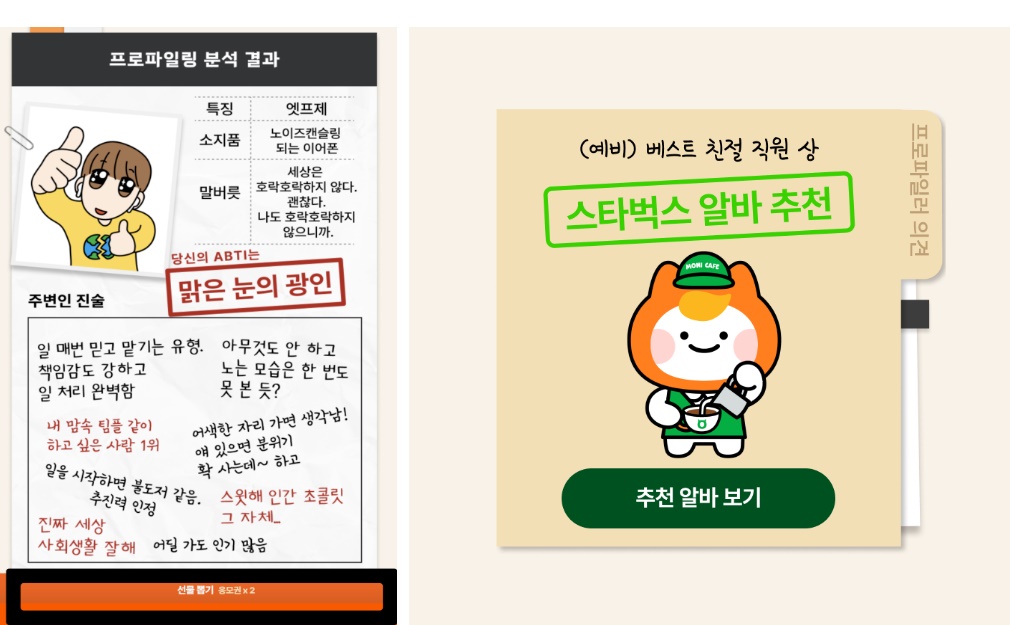 재미로 이벤트 응모하면서 사은품도 제공하다고 하니 한번 알바 심리 테스트를 해보시는걸 추천드립니다.