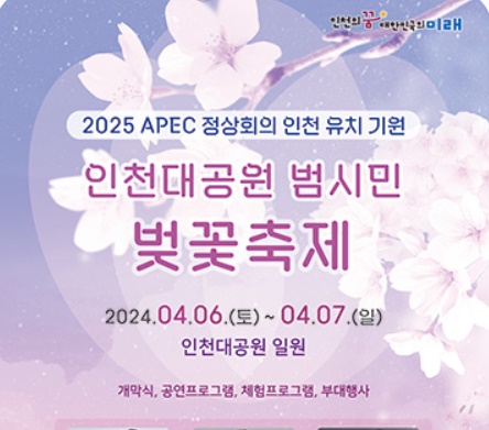 2024년 인천대공원 범시민 벚꽃축제가 이번4월에 진행합니다.