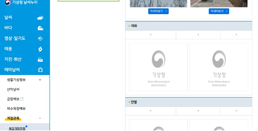 - step2/ "계절관측" 탭 하단의 "봄꽃개화현황" 들어가기
