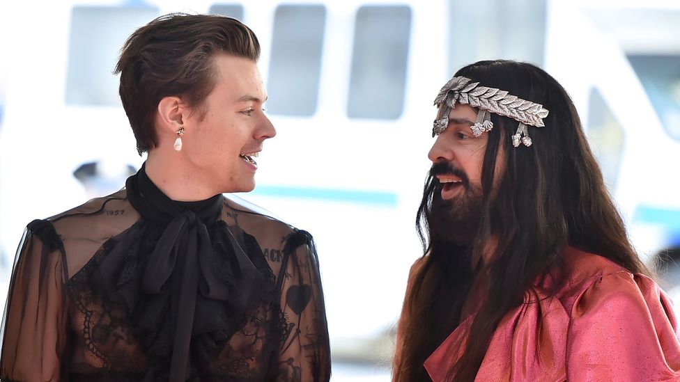 진주 귀걸이를 한 해리 스타일스와 2019 멧 갈라에서 구찌의 알레산드로 미켈레
